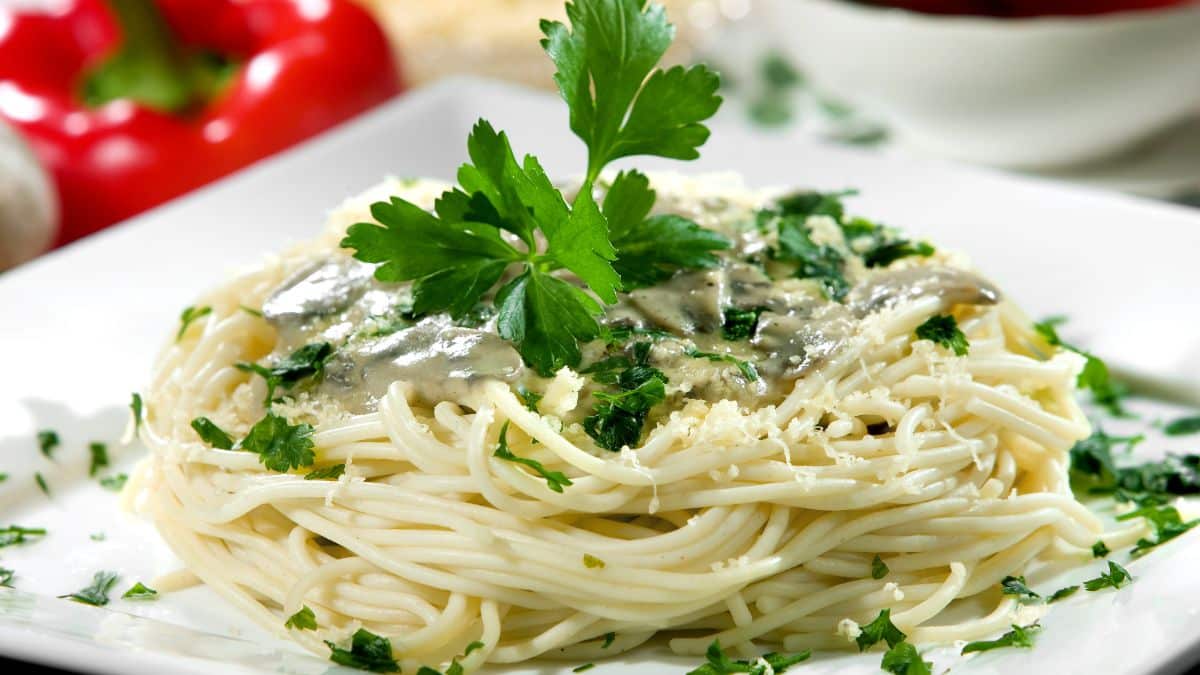 Spaghetti in mushroom sauce is a favorite dish of all pasta and mushroom lovers. Quick to prepare and very tasty and exquisite in its simplicity. It is ideal when we have unexpected guests and as a quick snack after work. There is nothing to prevent you from modifying the recipe a little to your liking