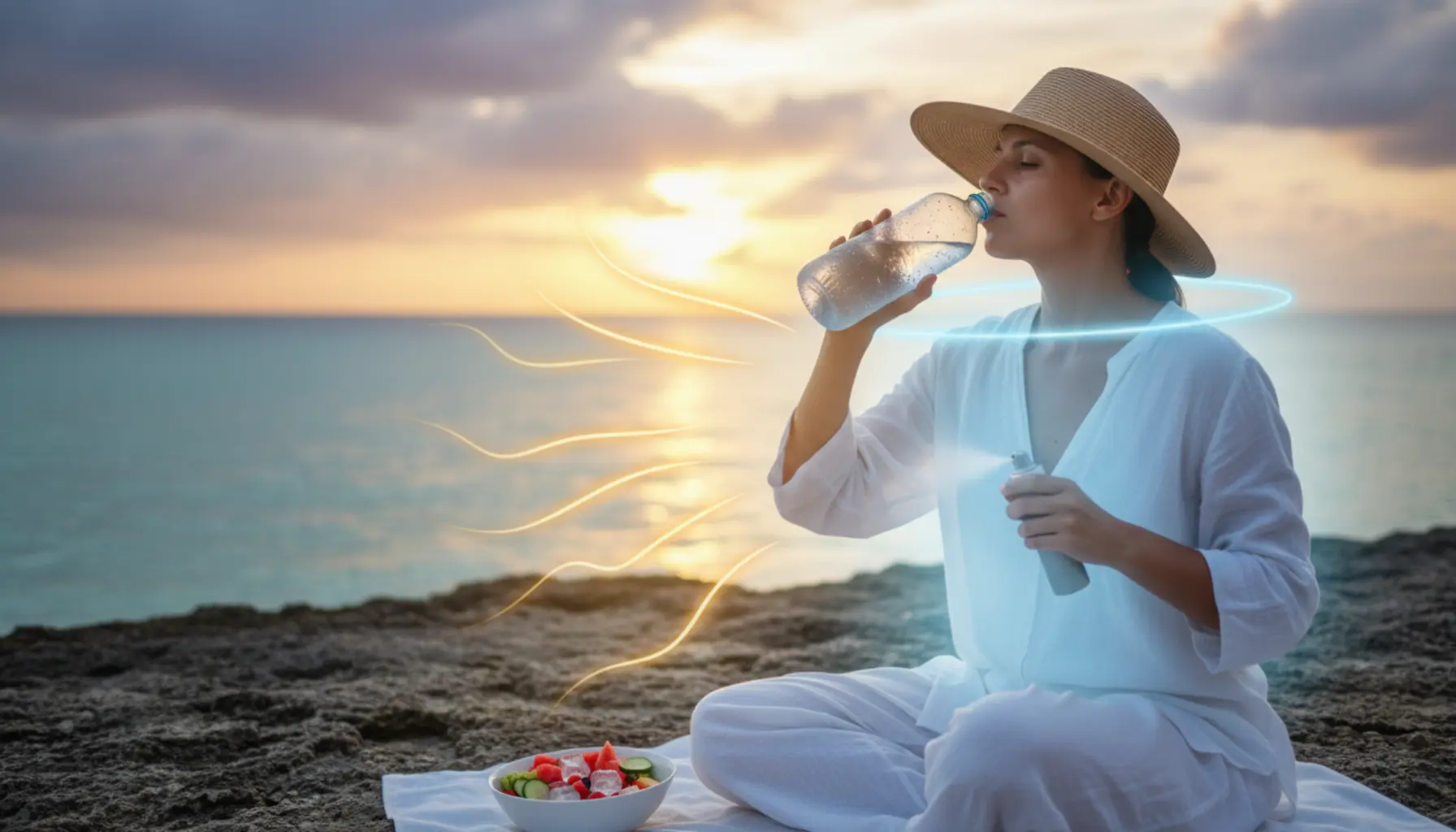Podczas upałów organizm pracuje na zwiększonych obrotach, a utrata wody następuje znacznie szybciej niż w chłodniejsze dni. Woda jest podstawowym składnikiem naszego ciała – stanowi około 60% masy dorosłego człowieka – i bierze udział praktycznie we wszystkich procesach życiowych: od regulacji temperatury, przez transport składników odżywczych, po usuwanie toksyn. Gdy temperatura otoczenia rośnie, organizm intensywniej się poci, aby się schłodzić. Pot w większości składa się z wody i elektrolitów (głównie sodu, potasu, magnezu), które są niezbędne do prawidłowej pracy mięśni, serca i układu nerwowego. Jeśli w porę nie uzupełnisz tych strat, dochodzi do odwodnienia, które może objawiać się nie tylko pragnieniem, ale też bólem głowy, rozdrażnieniem, spadkiem koncentracji, uczuciem osłabienia czy skurczami mięśni. Niezauważone lub zignorowane odwodnienie w czasie upału może w krótkim czasie przerodzić się w niebezpieczny dla życia udar cieplny lub przegrzanie organizmu. Woda pełni też rolę „klimatyzatora wewnętrznego”: uczestniczy w termoregulacji poprzez pocenie się i parowanie z powierzchni skóry. Gdy masz odpowiedni poziom nawodnienia, krew ma właściwą objętość i może skuteczniej rozprowadzać ciepło po ciele, a następnie oddawać je na zewnątrz. Przy niedoborze płynów krew gęstnieje, krążenie staje się mniej wydajne, serce musi bić szybciej, a Ty odczuwasz silniejsze zmęczenie i przegrzanie. Wysokie temperatury zwiększają również ryzyko spadku ciśnienia, omdleń i zawrotów głowy, zwłaszcza u osób starszych, dzieci, kobiet w ciąży i osób z chorobami serca – w ich przypadku właściwe nawodnienie jest jednym z kluczowych elementów profilaktyki powikłań zdrowotnych. Warto pamiętać, że pragnienie to już sygnał ostrzegawczy: oznacza, że organizm zaczął wchodzić w lekkie odwodnienie. Dlatego w upalne dni nie należy czekać, aż zachce się pić, lecz sięgać po wodę regularnie, małymi łykami, w ciągu całego dnia, nawet jeśli subiektywnie nie odczuwasz jeszcze suchości w ustach. Znaczenie ma również jakość wybieranych płynów – najlepiej sprawdza się woda, w tym woda mineralna dostarczająca elektrolitów, ewentualnie niesłodzona herbata ziołowa lub rozcieńczone naturalne soki. Z kolei słodkie napoje gazowane, mocna kawa czy alkohol sprzyjają odwodnieniu, ponieważ działają moczopędnie i destabilizują gospodarkę wodno-elektrolitową, co w połączeniu z wysoką temperaturą może szczególnie obciążać układ krążenia. Wysoki poziom nawodnienia pomaga także utrzymać sprawność psychiczną i fizyczną: odpowiednia ilość wody wspiera pracę mózgu, poprawia koncentrację, refleks i samopoczucie, co ma duże znaczenie, gdy musisz prowadzić samochód, obsługiwać maszyny lub podejmować szybkie decyzje w upale. Woda wpływa także na wygląd i kondycję skóry – przy dostatecznym nawodnieniu skóra lepiej radzi sobie z ekspozycją na słońce, jest bardziej elastyczna i mniej podatna na mikrouszkodzenia spowodowane suchym, gorącym powietrzem. Nie bez znaczenia jest też fakt, że organizm wykorzystuje wodę do chłodzenia narządów wewnętrznych – gdy jej brakuje, wrażliwe struktury, takie jak mózg czy serce, są bardziej narażone na przegrzanie.